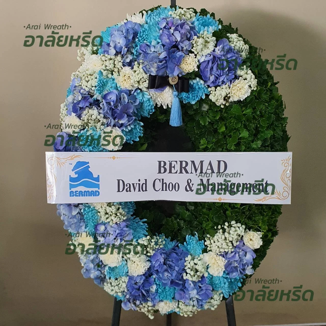 * แบบพวงหรีดด้านล่าง เป็นแบบของร้านพวงหรีดกรุงเทพและปริมณฑลที่จัดขึ้นจากดอกไม้ที่มีในแต่ละฤดูกาล รูปแบบและชนิดดอกไม้ อาจแตกต่างออกไปบ้างตามประเภทดอกไม้ที่มีในท้องตลาด